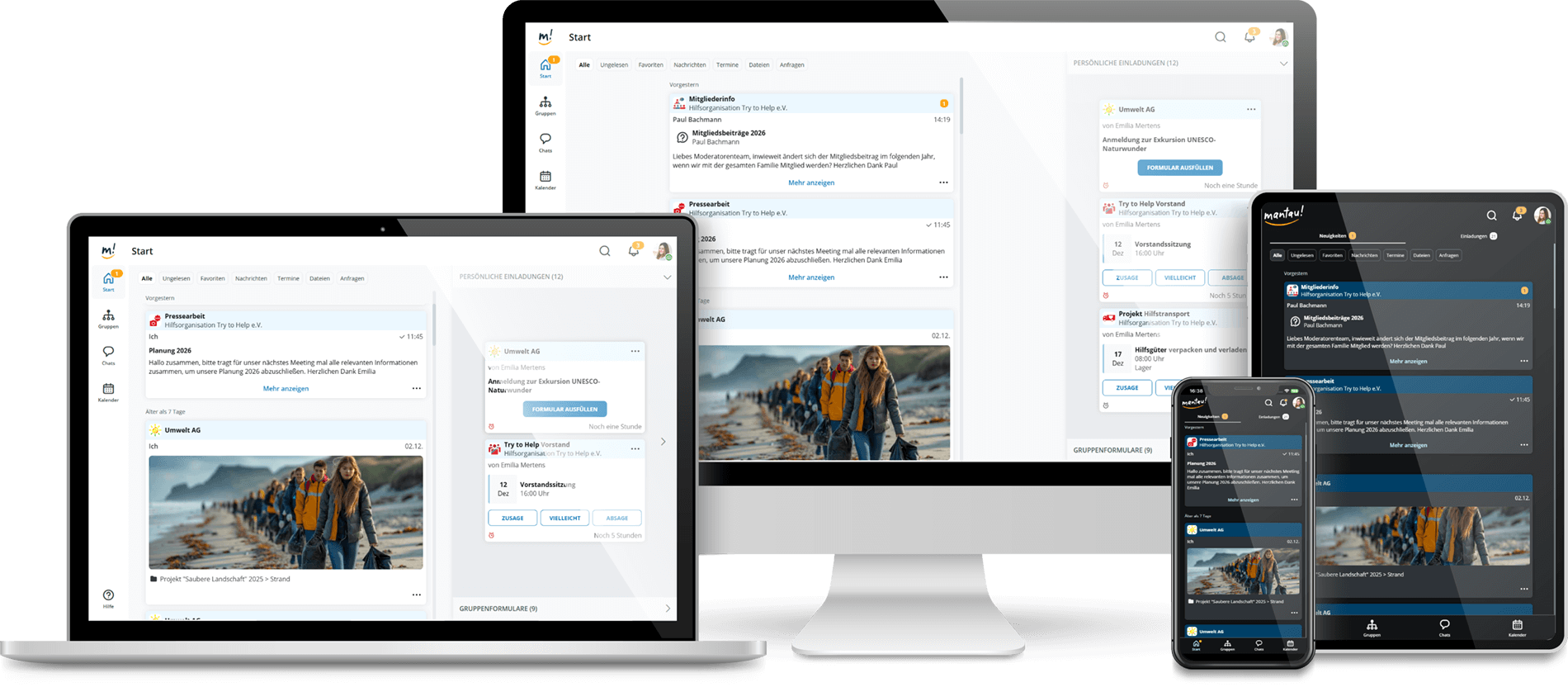 Genau dafür haben wir die Kollaborations-App mantau entwickelt, eine Kombination aus Messenger, sicherem Cloud-Speicher, gemeinsamem Terminplaner, universellem Formular- & Digitalisierungstool - und mehr. Ideal für kollaboratives Arbeiten, ideal zum Austauschen, Abstimmen, Dokumentieren und Speichern von Daten und Wissen.