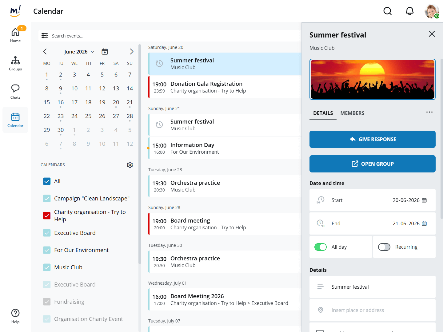 Personal overview of all events for all your groups