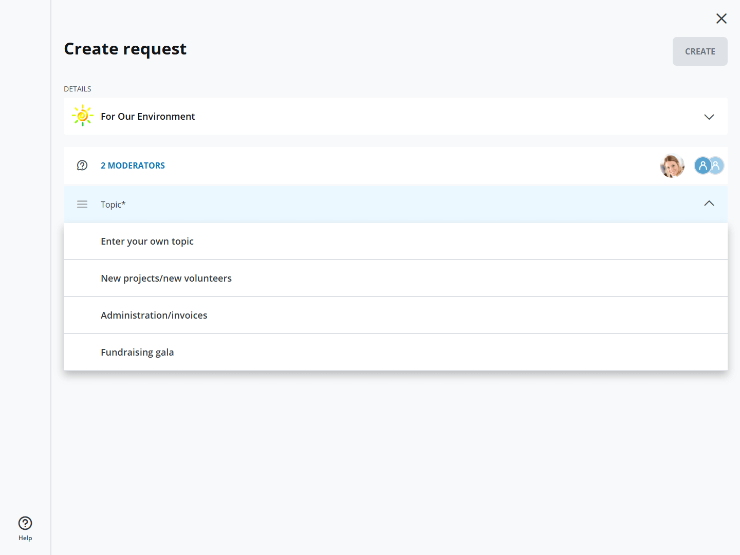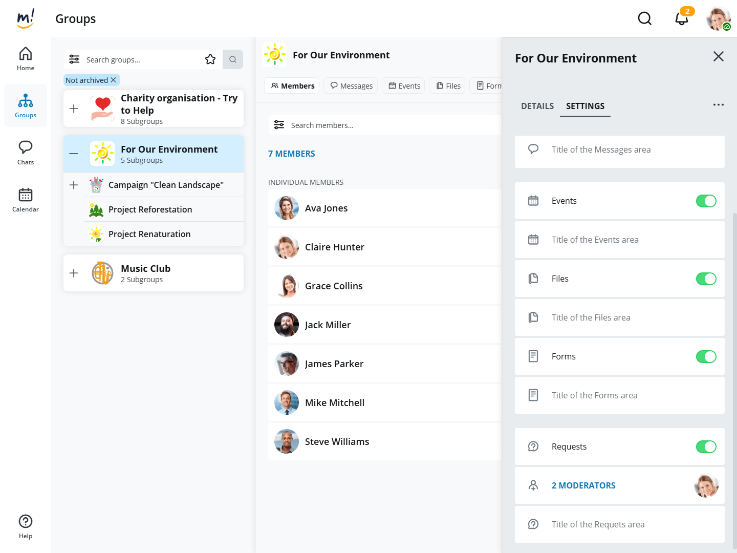 For the "Requests" function, one or more moderators must first be defined for the group. These are then available to members for their requests.