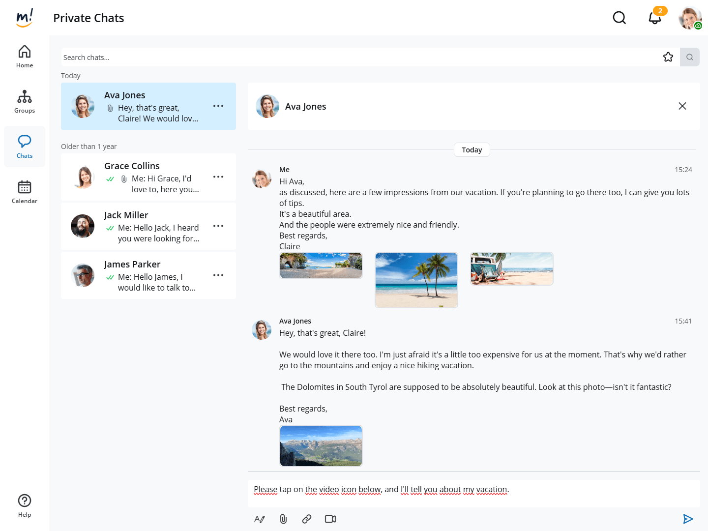 All groups and content are available everywhere and synchronously on all devices where you have mantau installed. Ideal for quick messaging on the way - as well as longer texting when using a computer. Ideal for hybrid work environments.