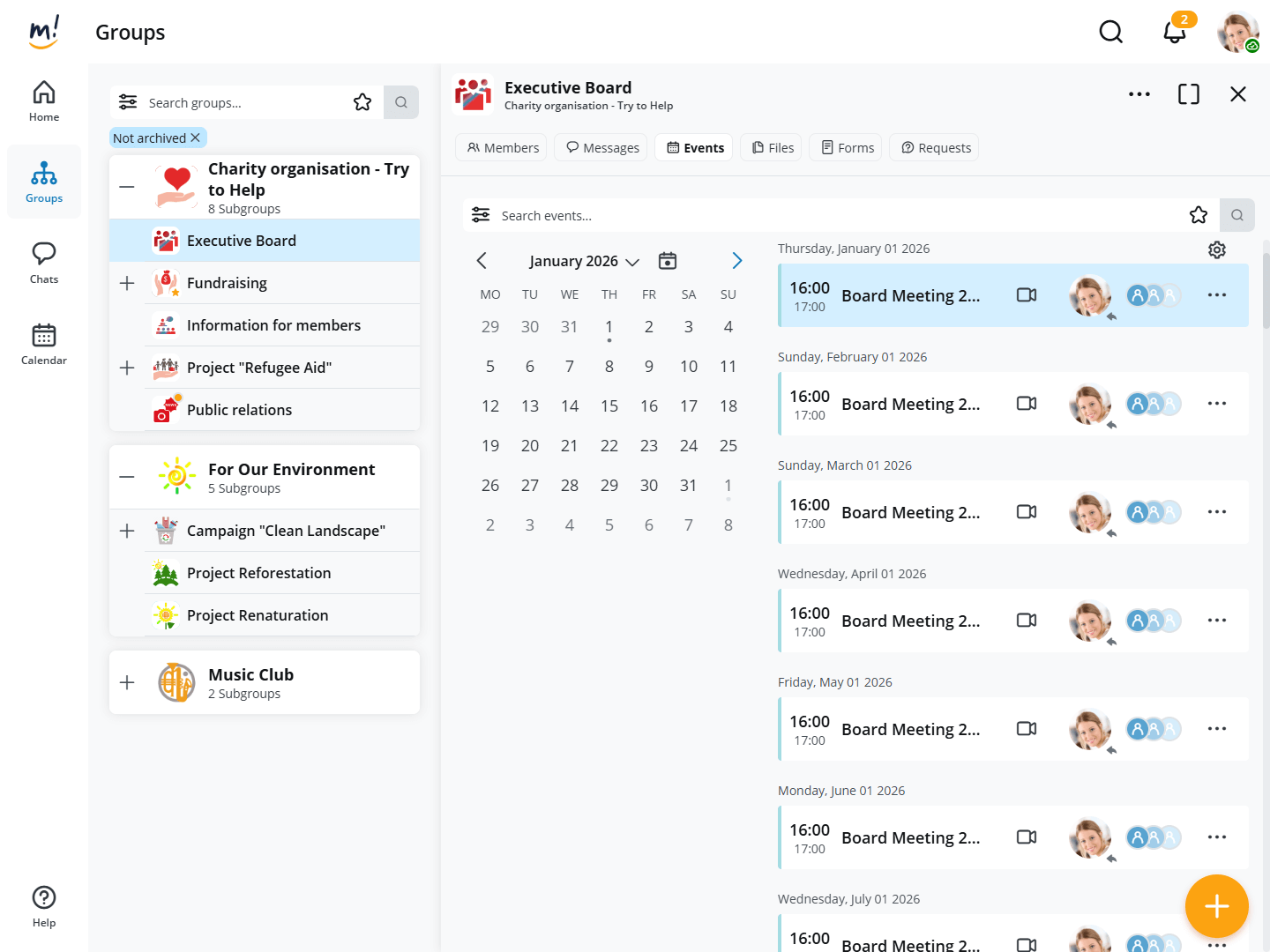 With mantau, you can now collaborate from anywhere. Not only write and share data, but also talk on the phone, discuss in video chat or even hold webinars. On the PC, Mac and via mobile devices. Ideal for decentrally organised NPOs.