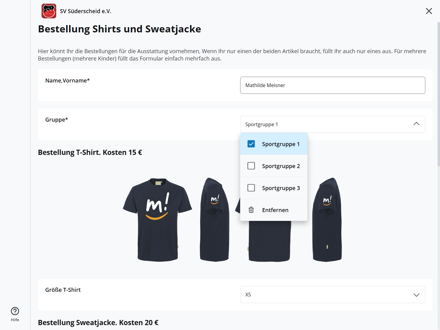 Internal orders for jerseys, costumes or other sports equipment can be easily organised. Simply use the form builder in mantau.