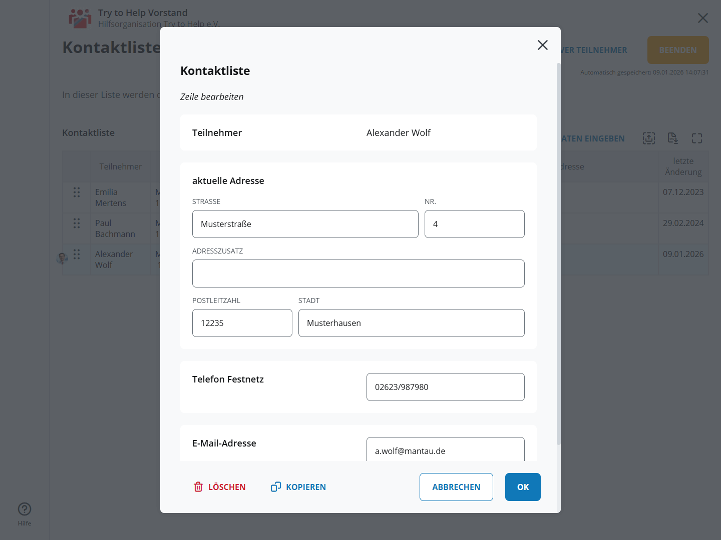 Die Datenerfassung pro Zeile erfolgt über eine eigenen Dialog, das macht es auch auf Mobilgeräten sehr benutzerfreundlich.
