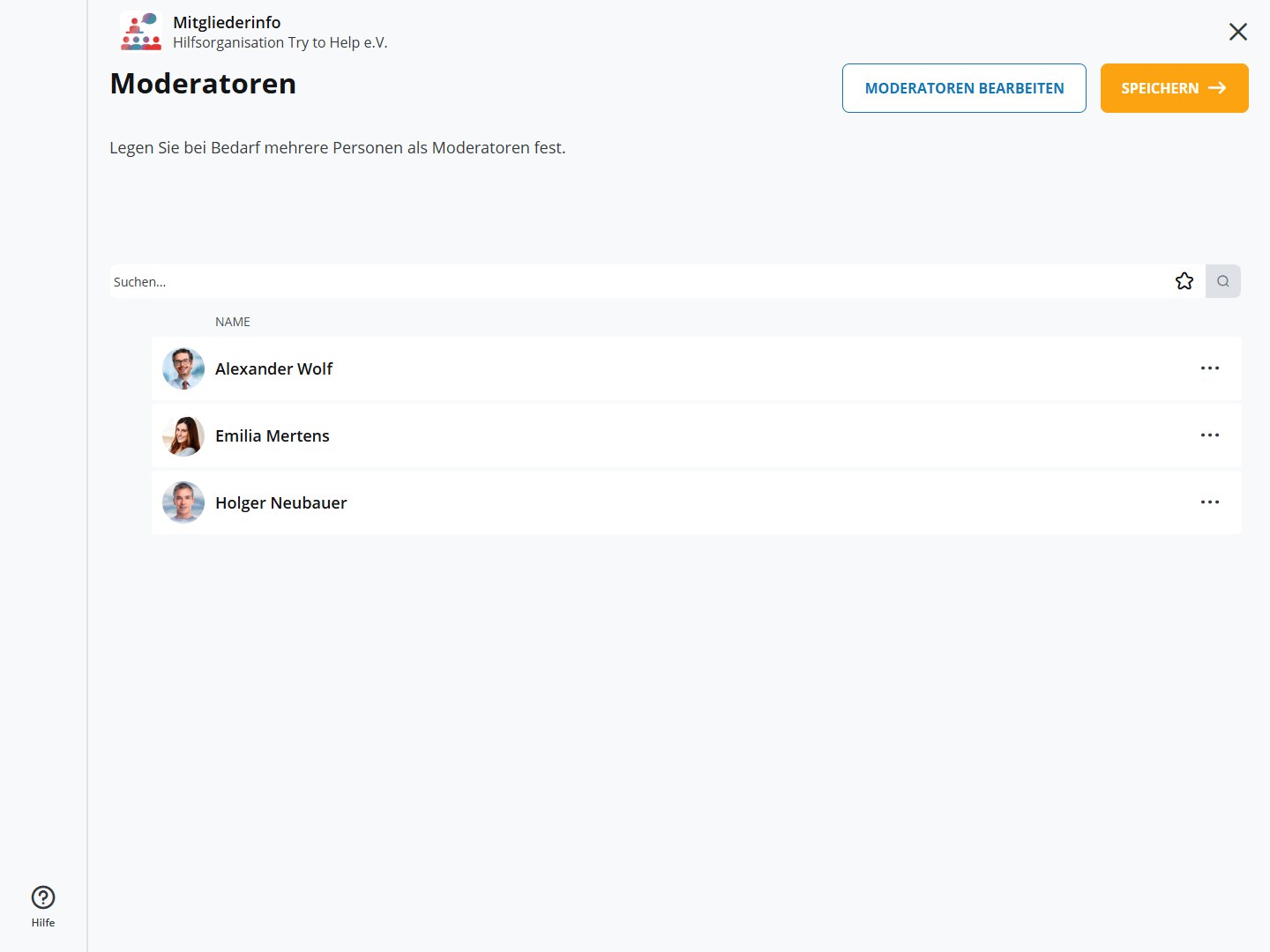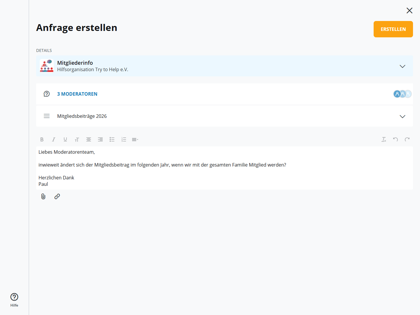 Für die Funktion "Anfragen" müssen zunächst ein oder mehrere Moderatoren für die Gruppe definiert werden. Diese stehen dann den Mitgliedern für deren Anfragen zur Verfügung.