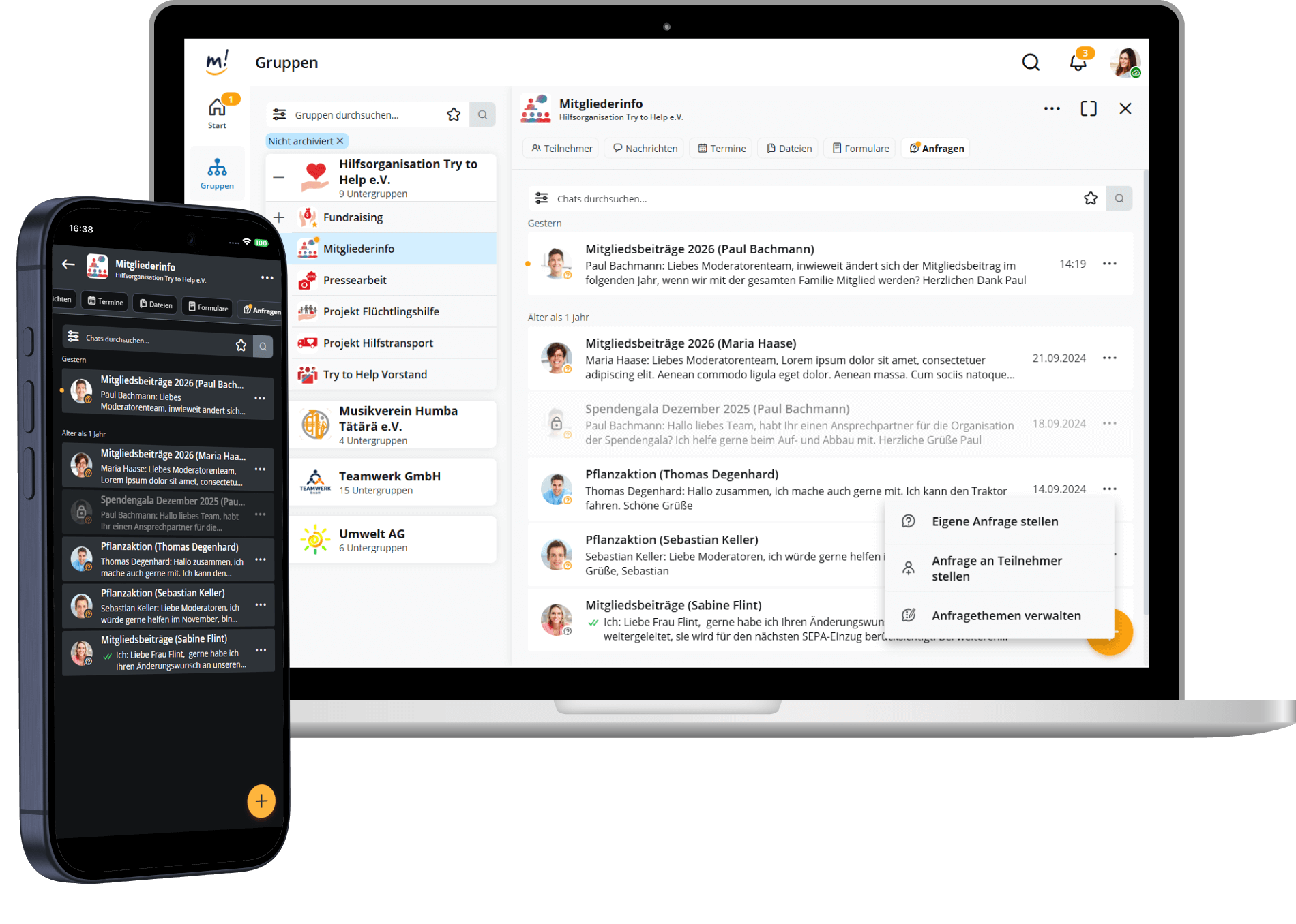 Die Funktion "Anfragen" in mantau ist eine komfortable Lösung, die unbeteiligte Mitglieder einer Gruppe vom "Frage-Antwort-Ping-Pong" anderer verschont.