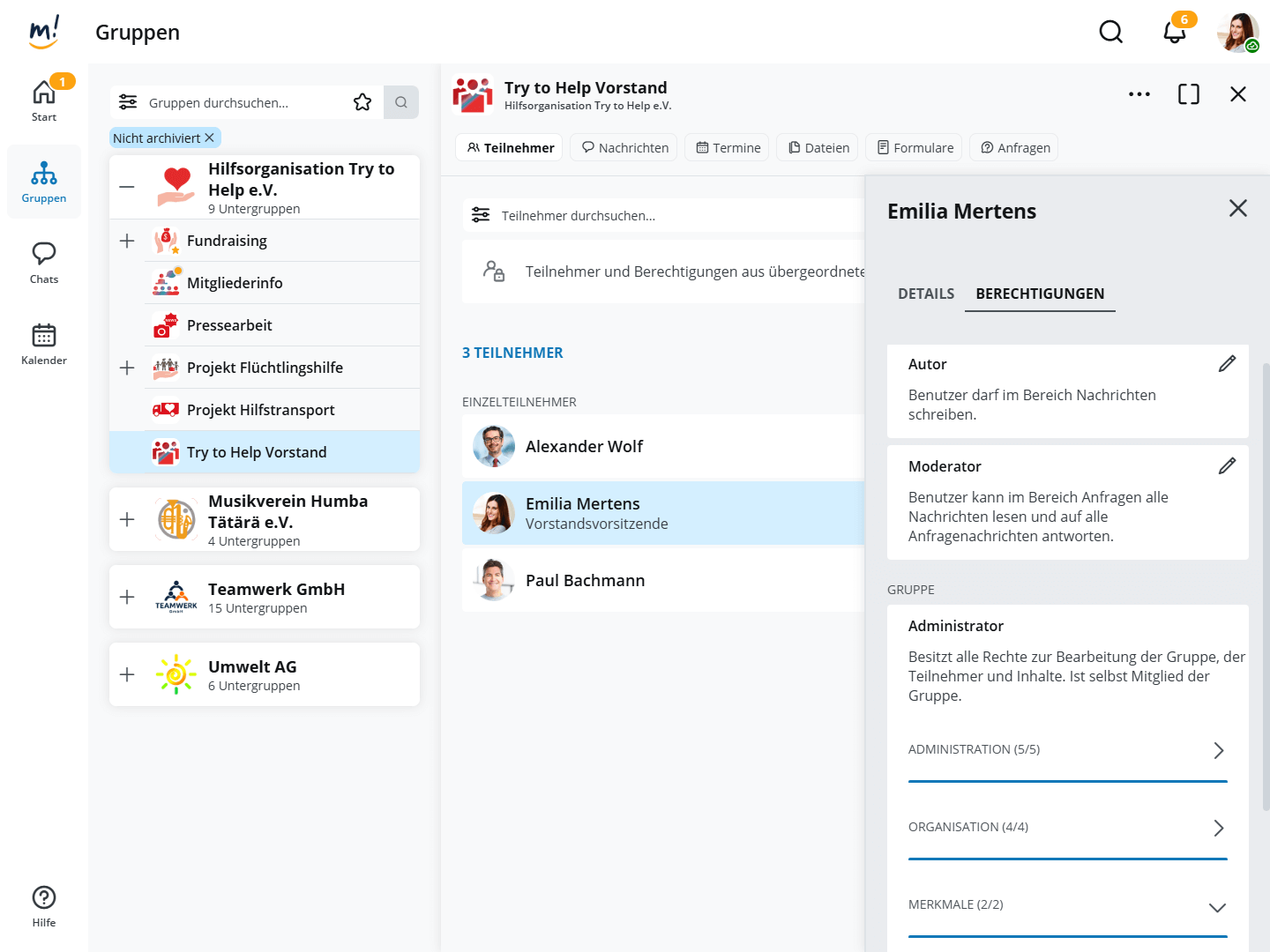 Gruppenmanager zum Organisieren von Gruppen durch passende Rollen und Rechte