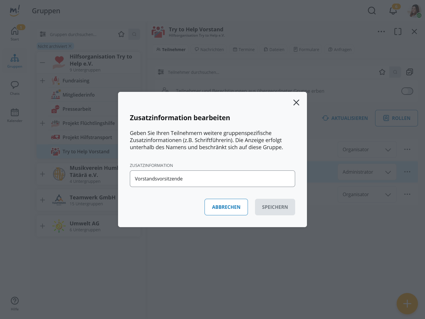 Innerhalb einer Gruppe kann es Sinn machen, zusätzlich zum Namen eine sichtbare Information hinzuzufügen, z.B. für eine Rolle, Funktion oder Titel.