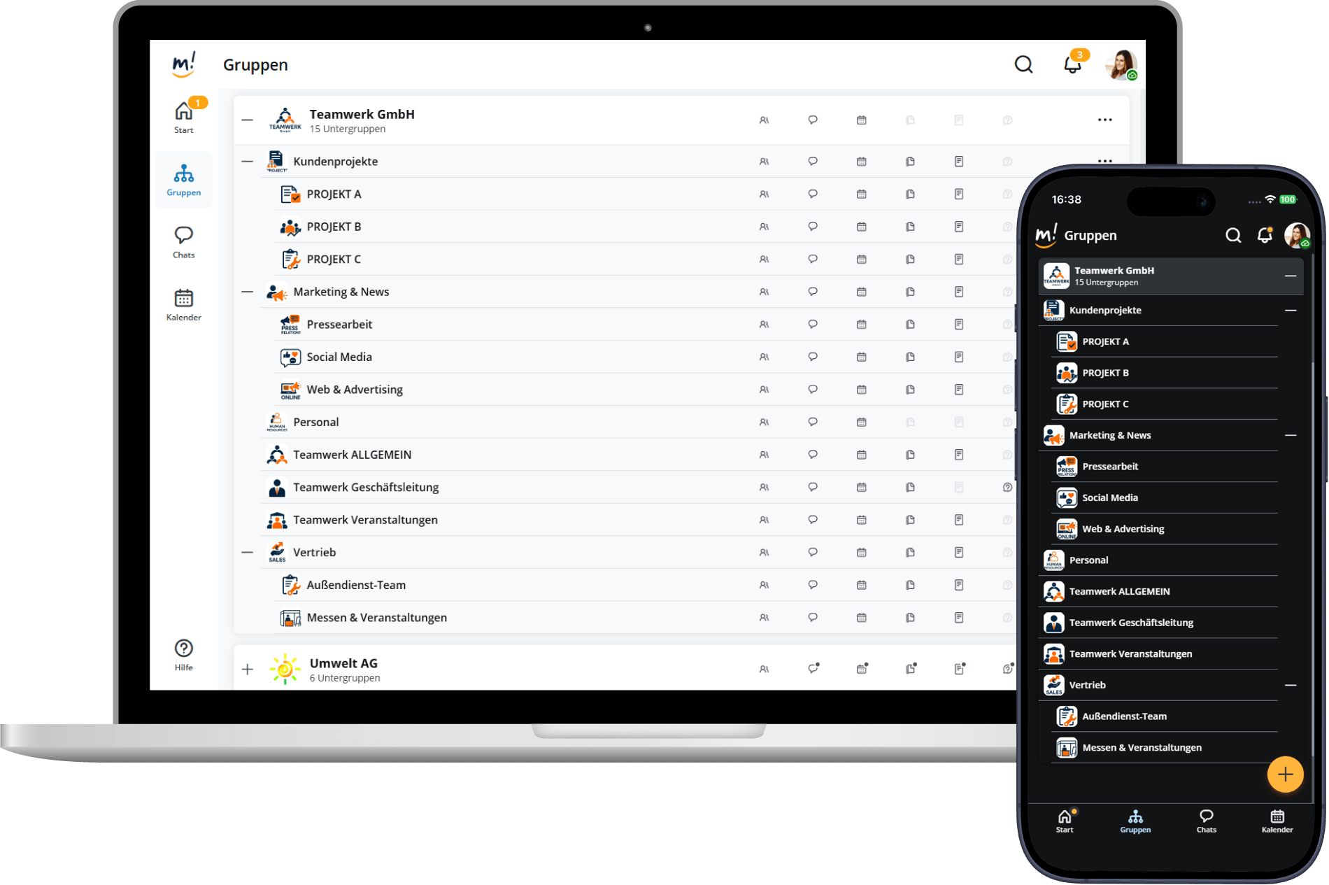 Alle Gruppen und Inhalte sind überall und synchron auf allen Geräten verfügbar, wo Sie mantau installiert haben. Ideal für die schnelle Nachricht unterwegs - wie auch für längeres Texten am PC. Ideal für hybride Arbeitsumgebungen.